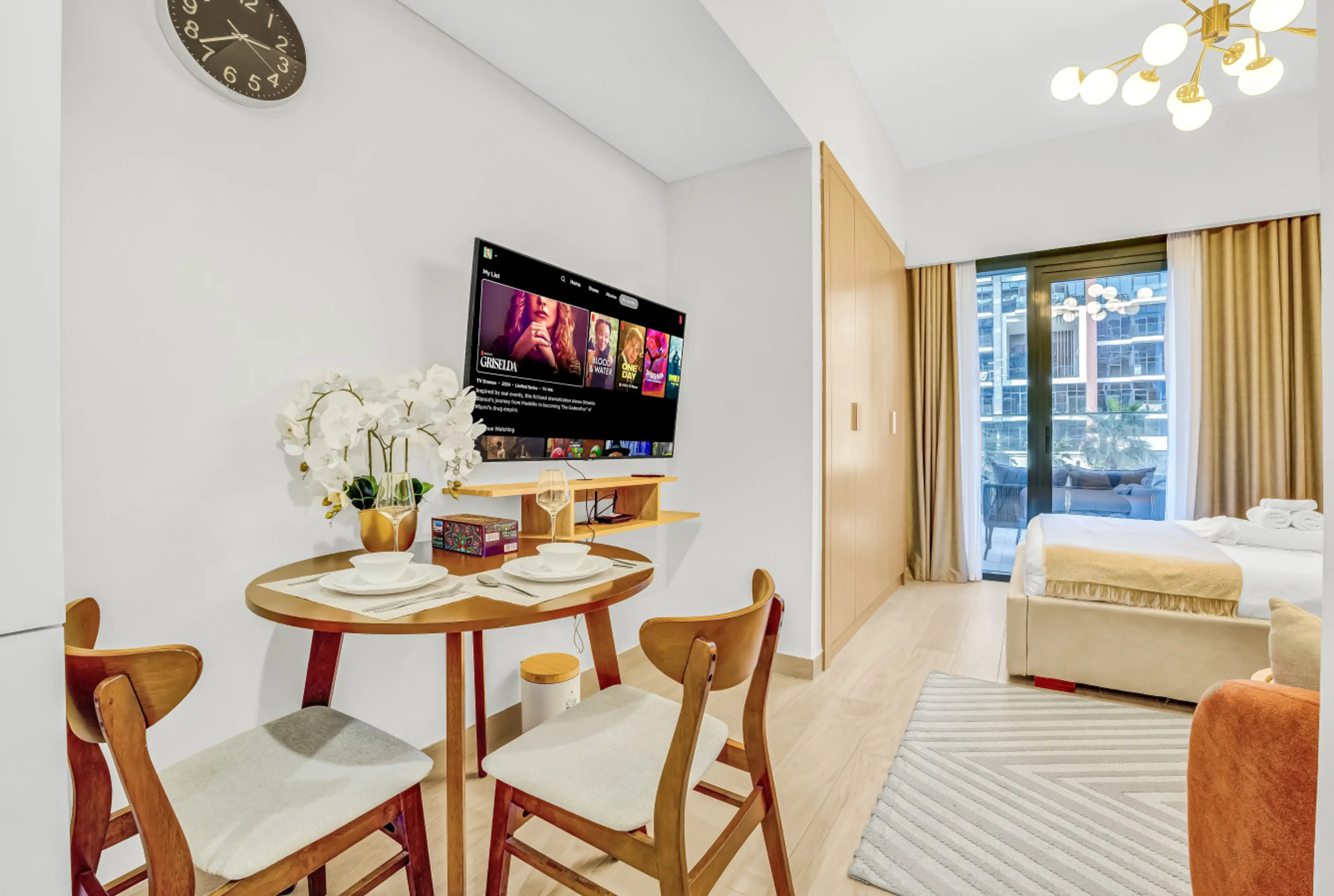 Our stylish and fully-equipped studios offer the perfect blend of comfort and convenience for travelers in the heart of Dubai. This studio features a cozy living space with a comfortable bed, a fully-equipped kitchen, high-speed Wi-Fi, smart TV, air conditioning, and a private bathroom with fresh ...