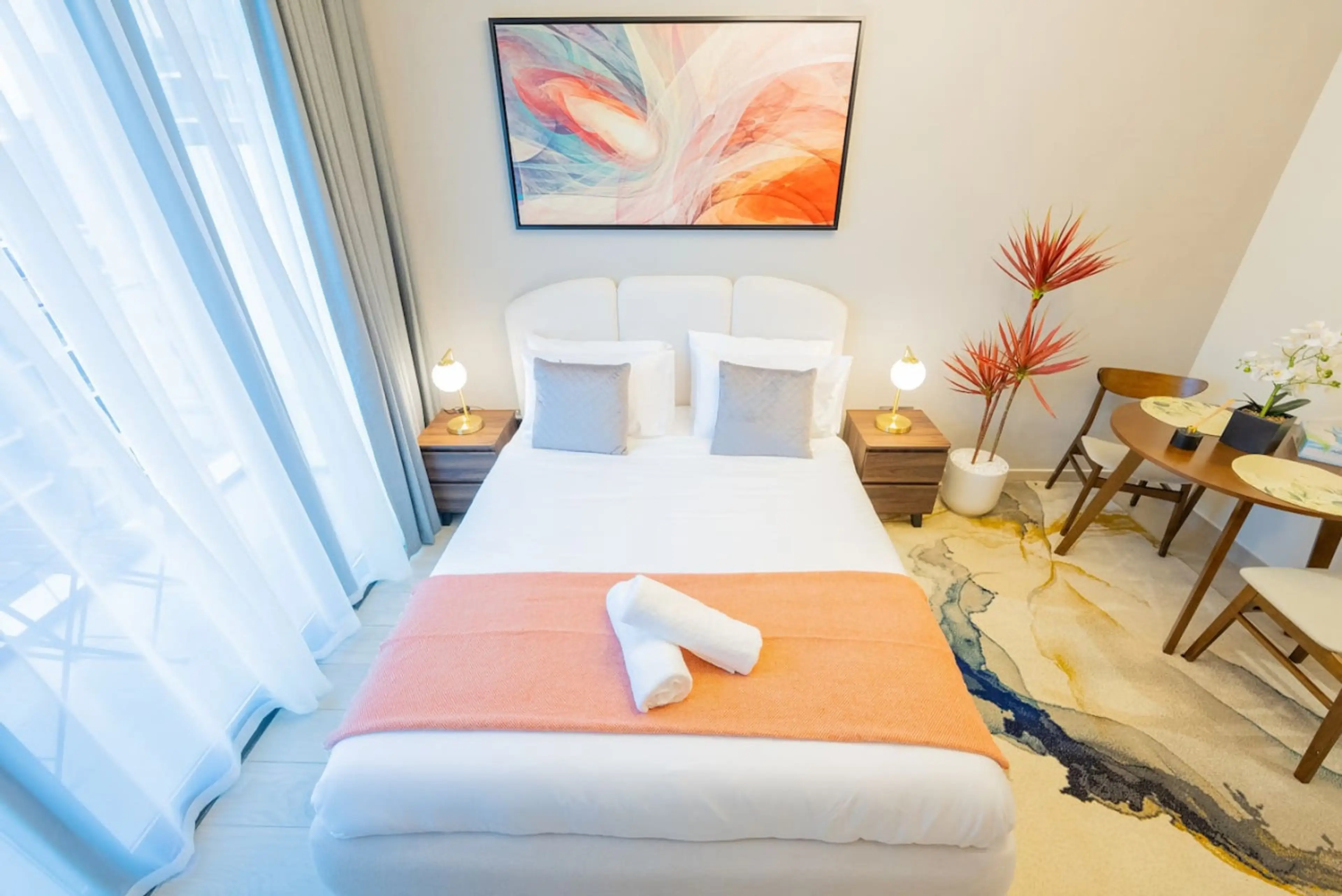 Our stylish and fully-equipped studios offer the perfect blend of comfort and convenience for travelers in the heart of Dubai. This studio features a cozy living space with a comfortable bed, a fully-equipped kitchen, high-speed Wi-Fi, smart TV, air conditioning, and a private bathroom with fresh t...