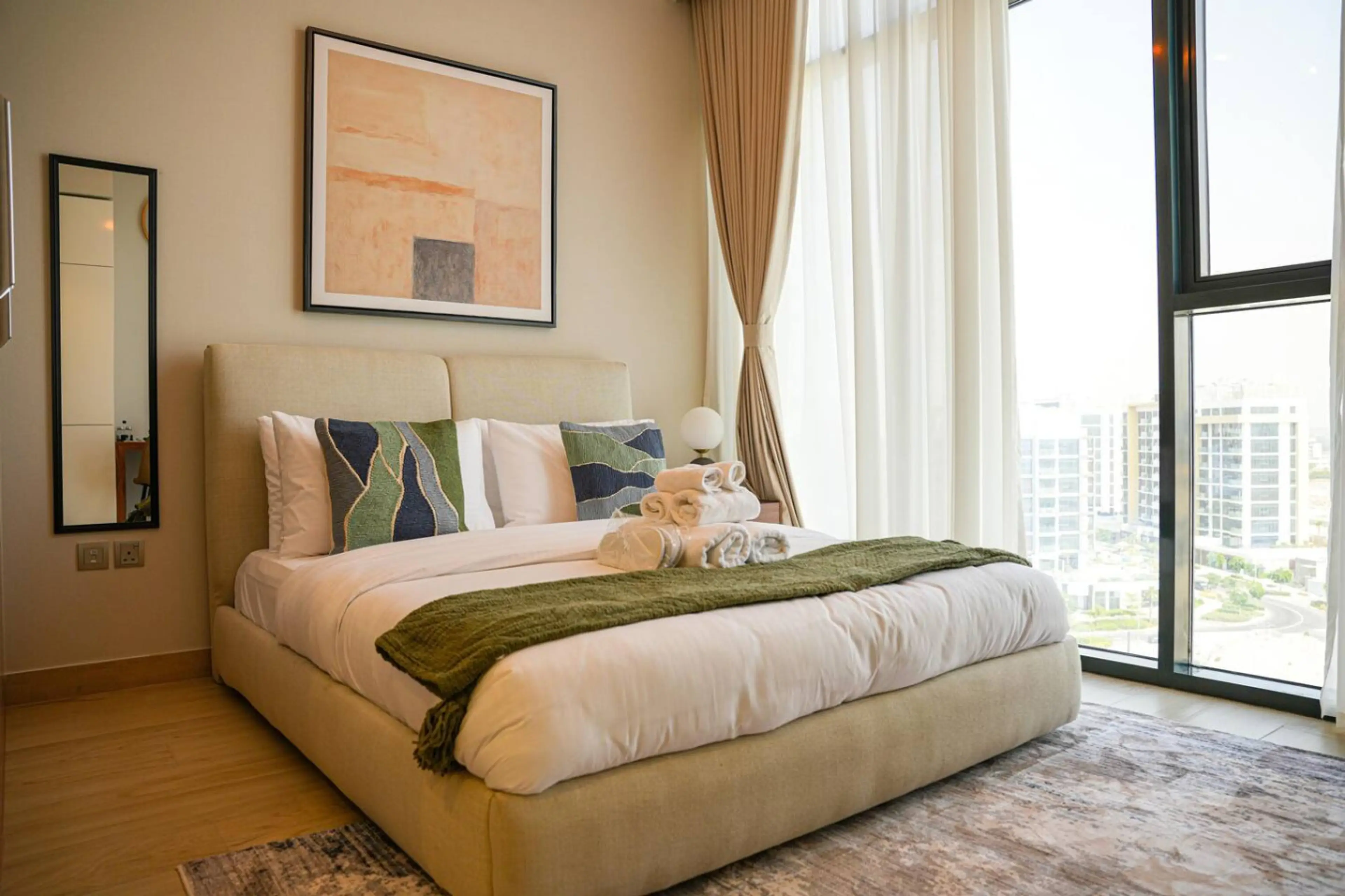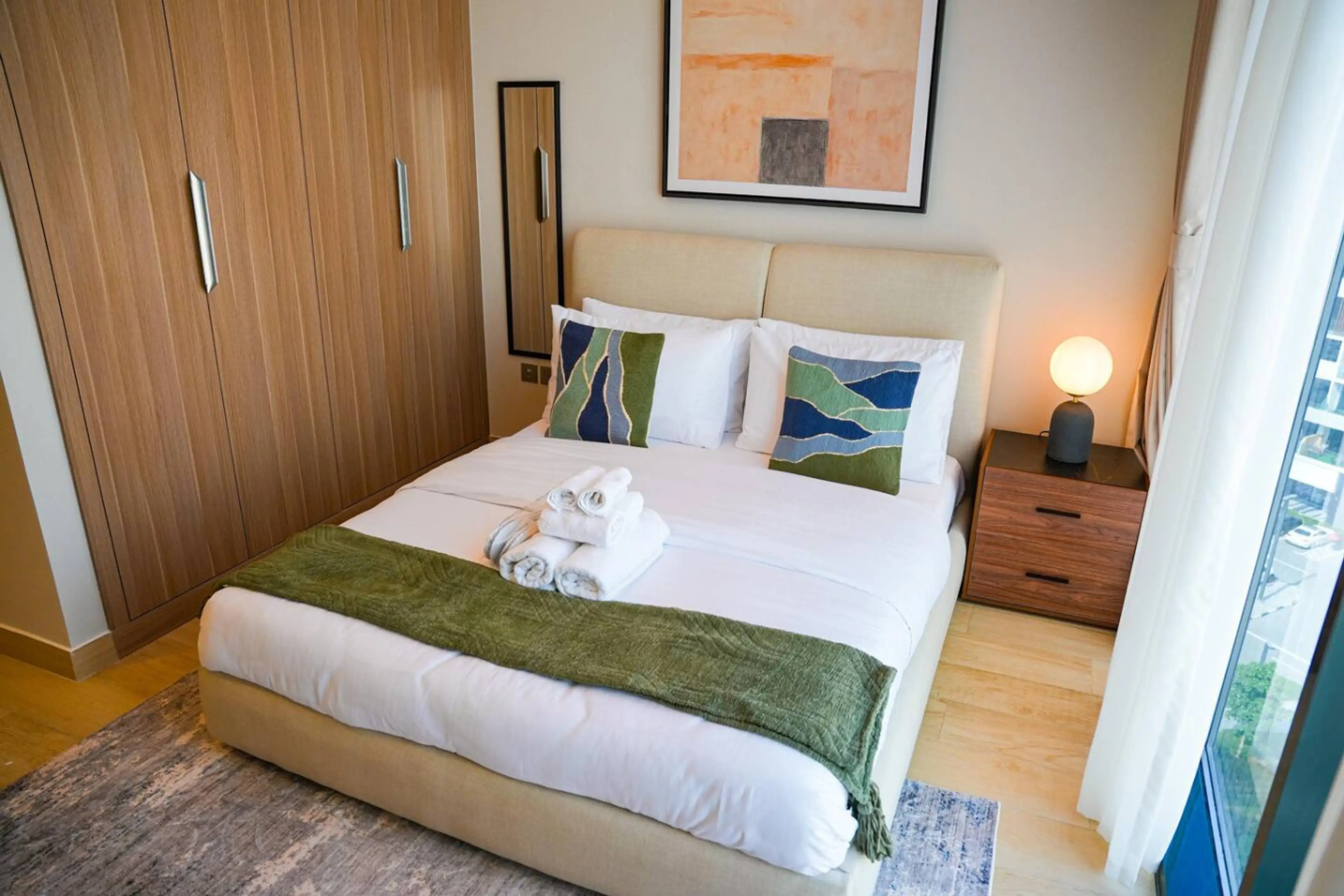 Our stylish and fully equipped studios offer the perfect blend of comfort and convenience for travelers in the heart of Dubai. This studio features a cozy living space with a comfortable bed, a fully equipped kitchen, high-speed Wi-Fi, smart TV, air conditioning, and a private bathroom with fresh t...