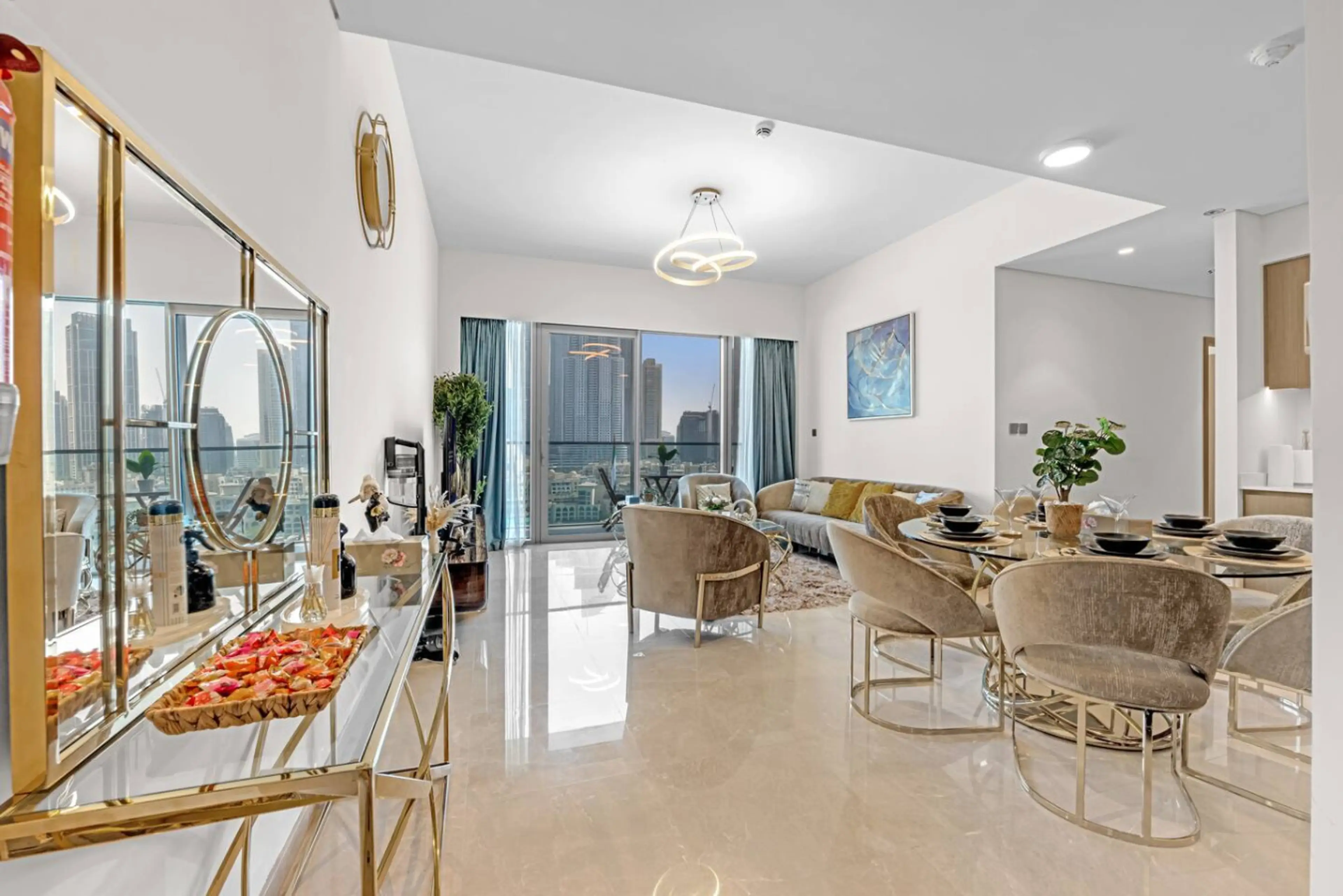 Wake up to breathtaking views of the Burj Khalifa and Dubai’s most iconic skyline in this elegant 2-bedroom apartment at Grande Residences, located in the prestigious Opera District of Downtown Dubai.